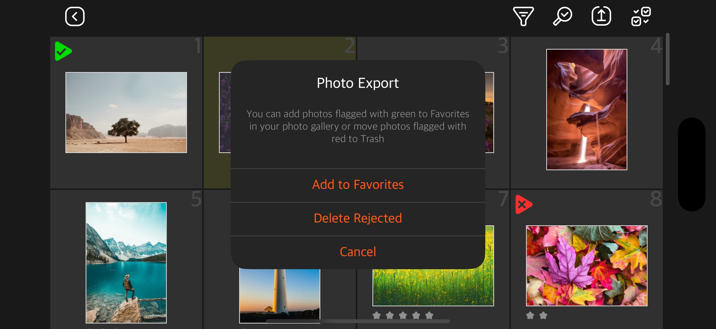 The app helps you quickly and efficiently organize your photo library. You can easily select your best shots by adding them to Favorites and delete unsuccessful ones.